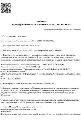 Лицензии медицинского центра Q-Клиника Гарибальди