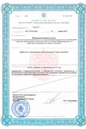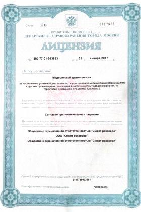 Лицензии медицинского центра Smart Recovery на Крылатской