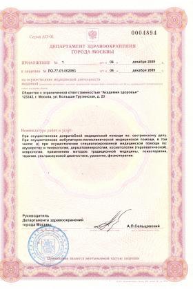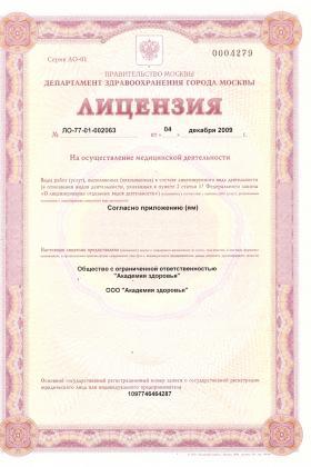Лицензии медицинского центра Академия здоровья на Большой Грузинской