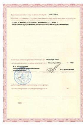 Лицензии медицинского центра Альянс Франсез на Садовой-Самотечной