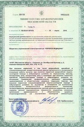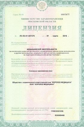 Лицензии медицинского центра АрсВита в Королеве