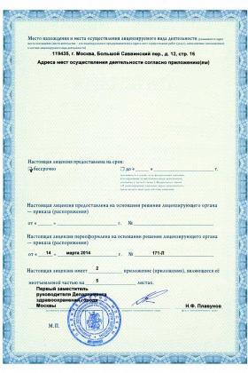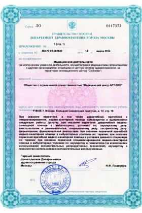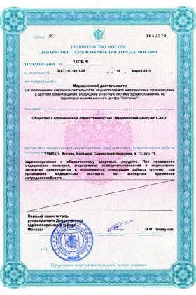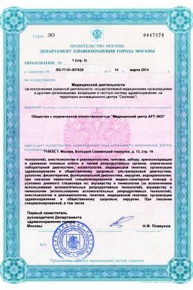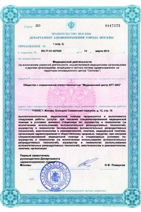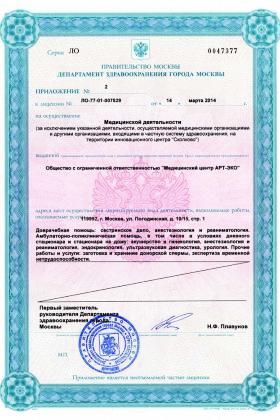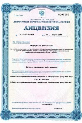 Лицензии медицинского центра АРТ-ЭКО в Большом Саввинском переулке