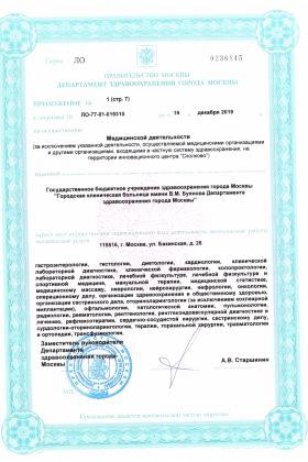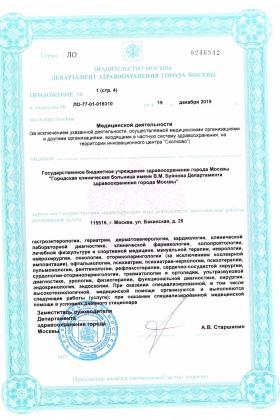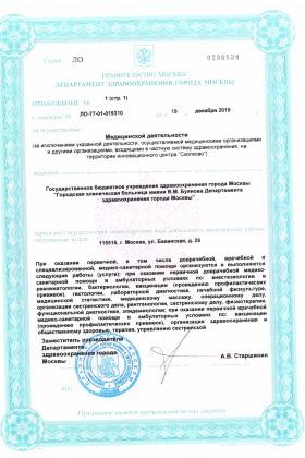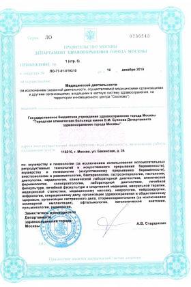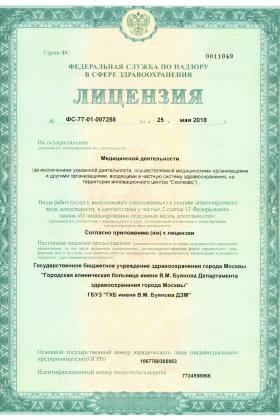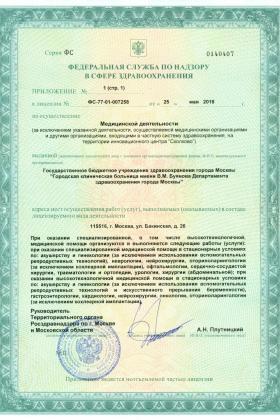Лицензии медицинского центра ГКБ имени В.М. Буянова ДЗМ (Больница №12 в Царицыно)
