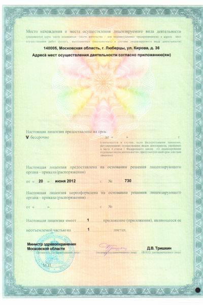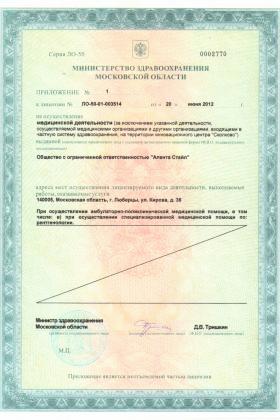 8 (495) 363-40-76Лицензии медицинского центра Центр компьютерной томографии в Люберцах
