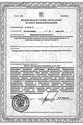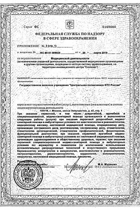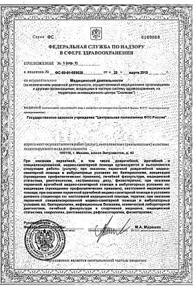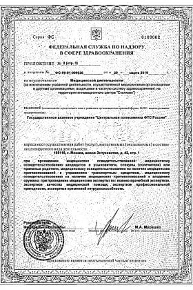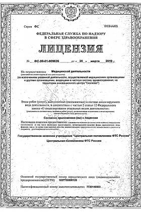 Лицензии медицинского центра Центральная поликлиника ФТС России