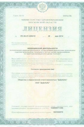 Лицензии медицинского центра ДеДоКуКа в Лосино-Петровском