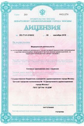 Лицензии медицинского центра Детская поликлиника №118 на Южнобутовской