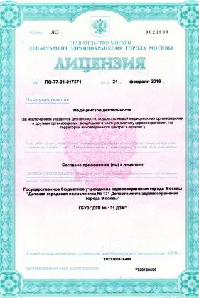 Лицензии медицинского центра Детская поликлиника №131 на Мосфильмовской