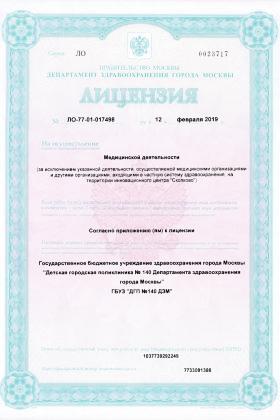 Лицензии медицинского центра Детская поликлиника №140 на бульваре Яна Райниса