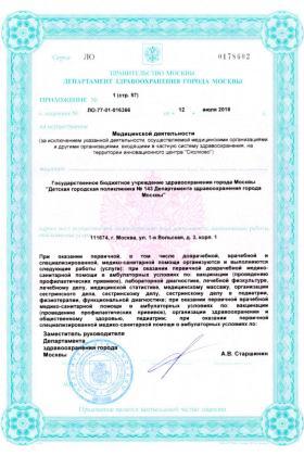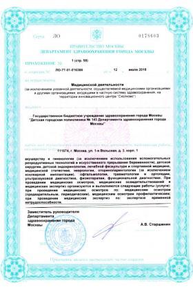 Лицензии медицинского центра Детская поликлиника №143 на 1-й Вольской