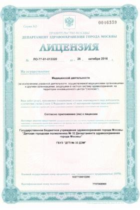 Лицензии медицинского центра Детская поликлиника №32 на Фадеева