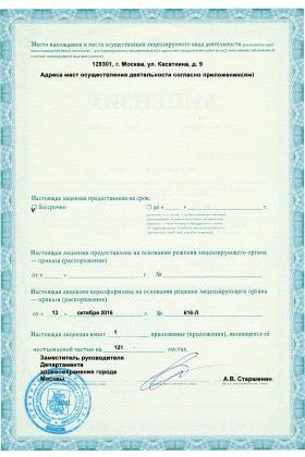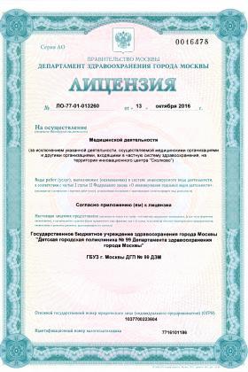 Лицензии медицинского центра Детская поликлиника №99 на Касаткина