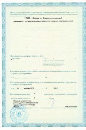 Лицензии медицинского центра Доктор Озон на Бульваре Дм. Донского