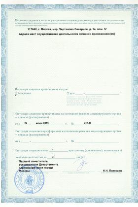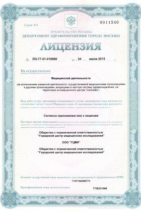 Лицензии медицинского центра ГЦМИ в Чертаново