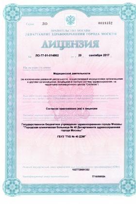 Лицензии медицинского центра ГКБ №40 на Касаткина