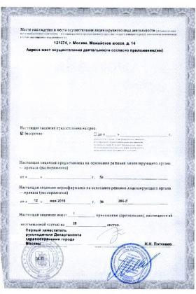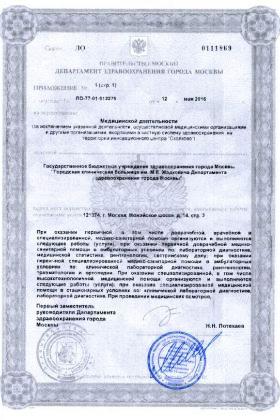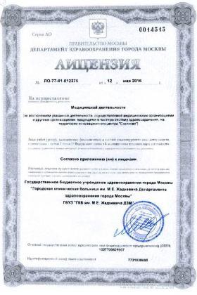 Лицензии медицинского центра ГКБ №71 им. М.Е. Жадкевича на Можайском шоссе
