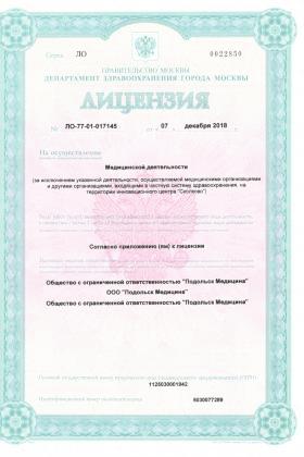 Лицензии медицинского центра ГлавВрач в Подольске