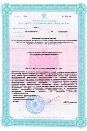 Лицензии медицинского центра Институт репродуктивной медицины REMEDI