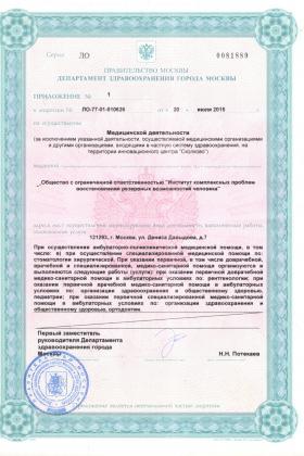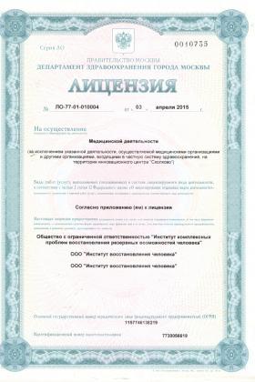 Лицензии медицинского центра Институт восстановления человека доктора Гриценко