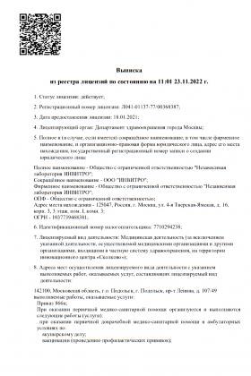 Лицензии медицинского центра Инвитро Москва Сити
