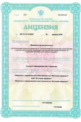 Лицензии медицинского центра Источник Здоровья на Александры Монаховой