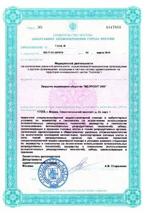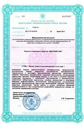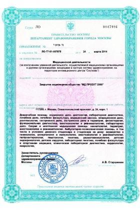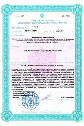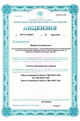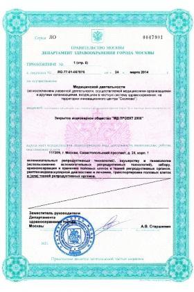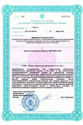 Лицензии медицинского центра Клинический Госпиталь MD GROUP на Севастопольском проспекте
