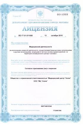 Лицензии медицинского центра Клиника Агапе