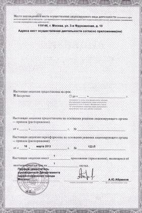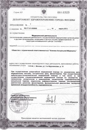 Лицензии медицинского центра Клиника актуальной медицины на 3-й Фрунзенской