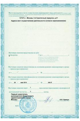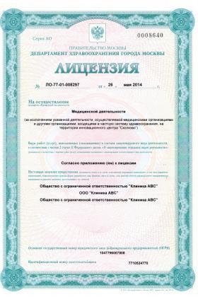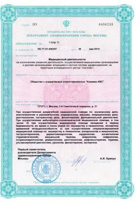 Лицензии медицинского центра Клиника АВС в 3-м Самотечном переулке