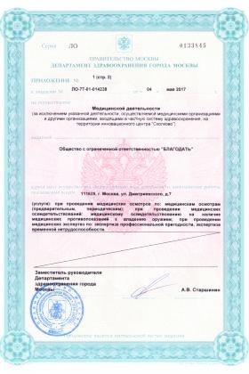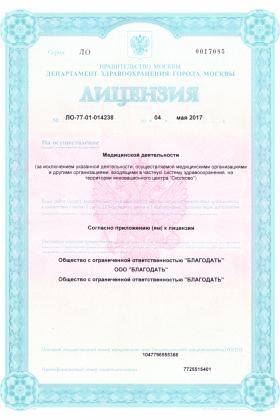 Лицензии медицинского центра Клиника Благодать на Дмитриевского