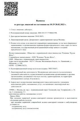 Лицензии медицинского центра Клиника Будем Жить в Тетеринском переулке