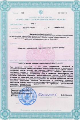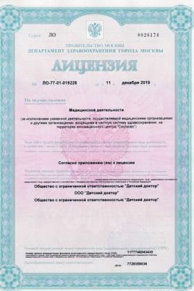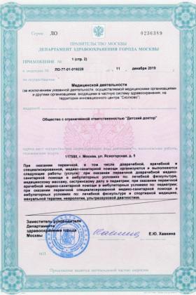 Лицензии медицинского центра Клиника доктора Шишонина детское отделение