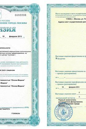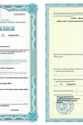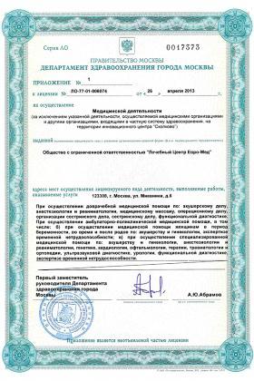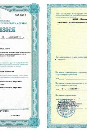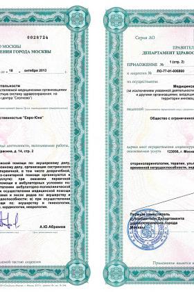 Лицензии медицинского центра Клиника «ЕвроМед» на Юго-Западной