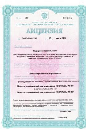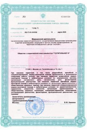 Лицензии медицинского центра Клиника Госпитальная
