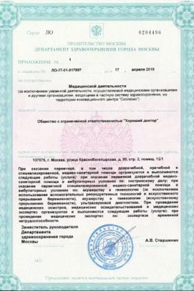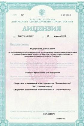 Лицензии медицинского центра Клиника Хороший Доктор на Краснобогатырской