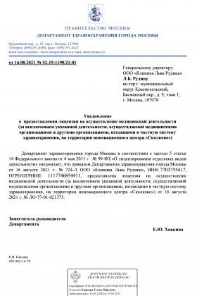 Лицензии медицинского центра Клиника Льва Рудина в Басманном переулке