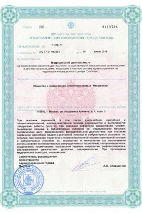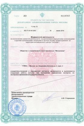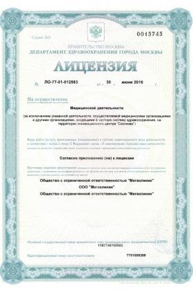 Лицензии медицинского центра Клиника «Мегаклиник»
