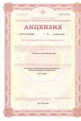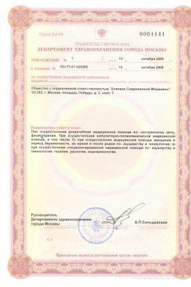 Лицензии медицинского центра Клиника Современной Медицины ИАКИ на площади Победы