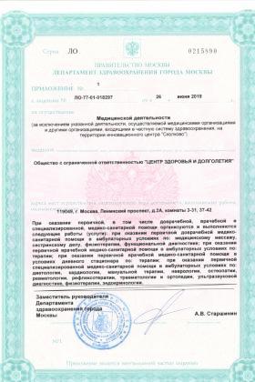 Лицензии медицинского центра Клиника здорового позвоночника Здравствуй на Октябрьской