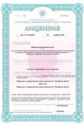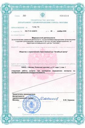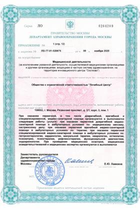 Лицензии медицинского центра Лечебный Центр на Рязанском проспекте