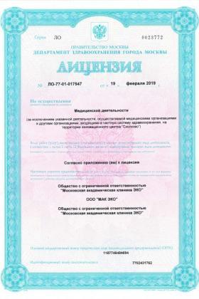 Лицензии медицинского центра МАК ЭКО на Большой Переяславской