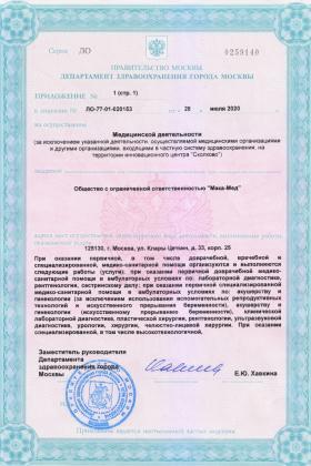 Лицензии медицинского центра Мака-Мед на Клары Цеткин