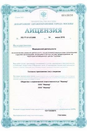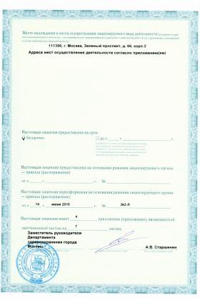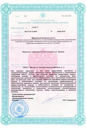 Лицензии медицинского центра Мать и Дитя на Авиаконструктора Микояна