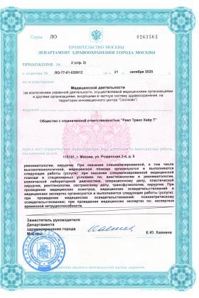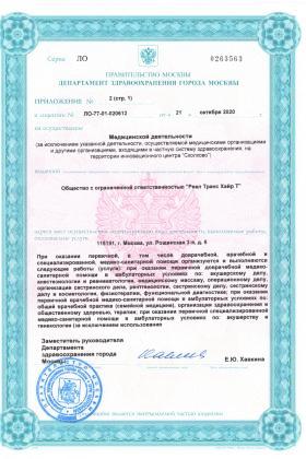 Лицензии медицинского центра МЦ Real Trans Hair на 3-й Рощинской
