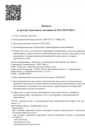 Лицензии медицинского центра МЦ Диагностика на проспекте Мира