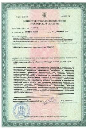 Лицензии медицинского центра МЦ Медиал в Павловском Посаде