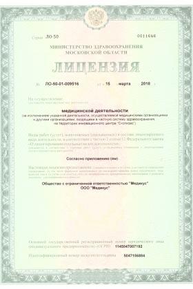 Лицензии медицинского центра МЦ Нарус в Химках на Дружбы