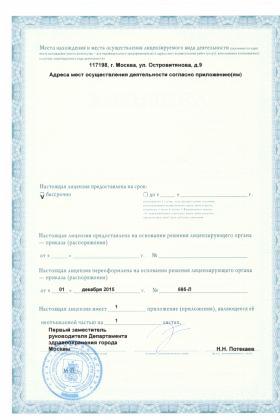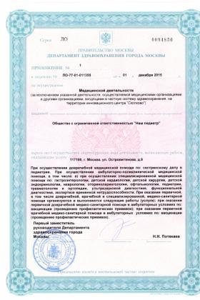 Лицензии медицинского центра МЦ Наш педиатр на Островитянова