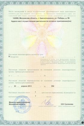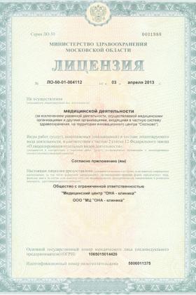 Лицензии медицинского центра МЦ ОНА-Клиника в Краснознаменске