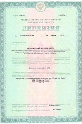 Лицензии медицинского центра МЦ Союз в Ямкино